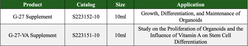 G-27 precisely replicates the tissue cell growth environment within the body, supporting normal growth and development of organoids and cells during in vitro culture.
