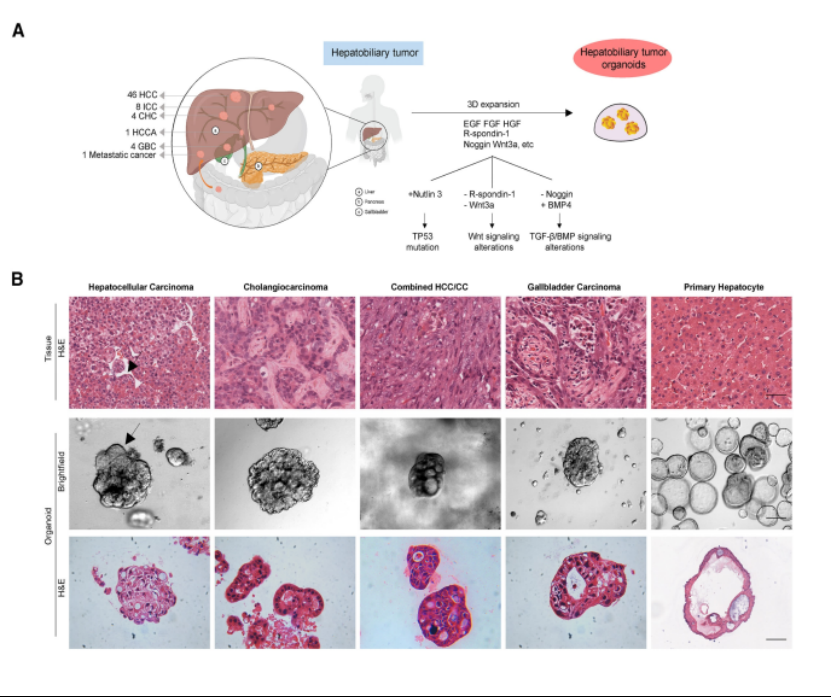 In summary, this study generated patient-derived hepatobiliary organoids (PDHOs) from Chinese patients directly from fresh tumor specimens in optimized culture media. Sixty-four PDHO lines were established and subjected to comprehensive histological, molecular, transcriptomic, genomic, and epigenomic analyses. Results demonstrated that the generated PDHOs retained the histological and molecular characteristics of their corresponding parental tumors. Furthermore, pharmacogenomic studies of PDHOs uncovered novel gene-drug associations, revealing connections and consistencies between multi-omics integration and alterations in key signaling and molecular pathways. Collectively, these findings highlight the potential utility of PDHO models in both basic and translational research, as well as in developing potential personalized therapeutic strategies.